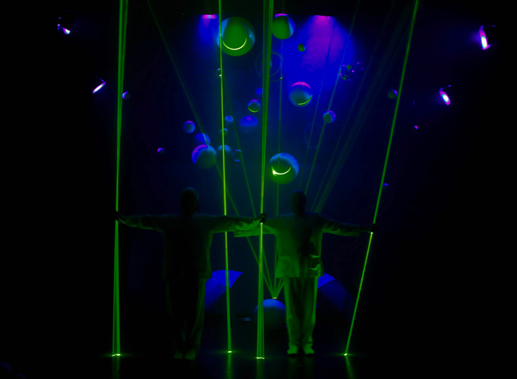 vie à une planète morte en lui apportant les 4 éléments. Ce spectacle de jonglage est rythmé par des effets lumineux