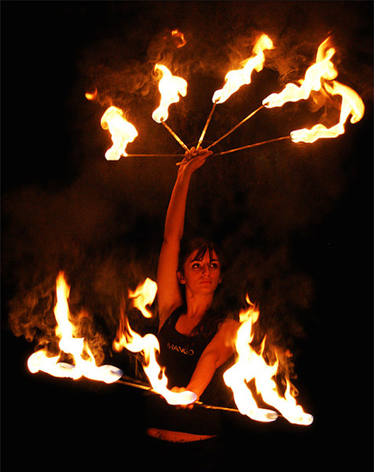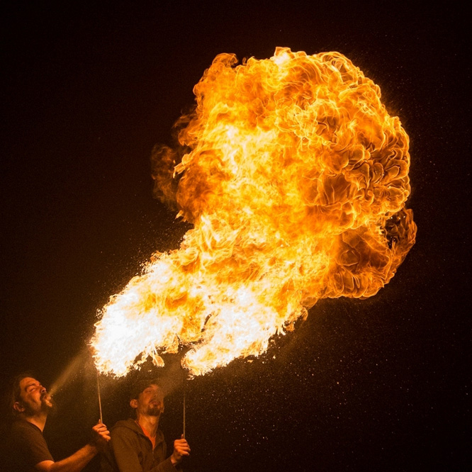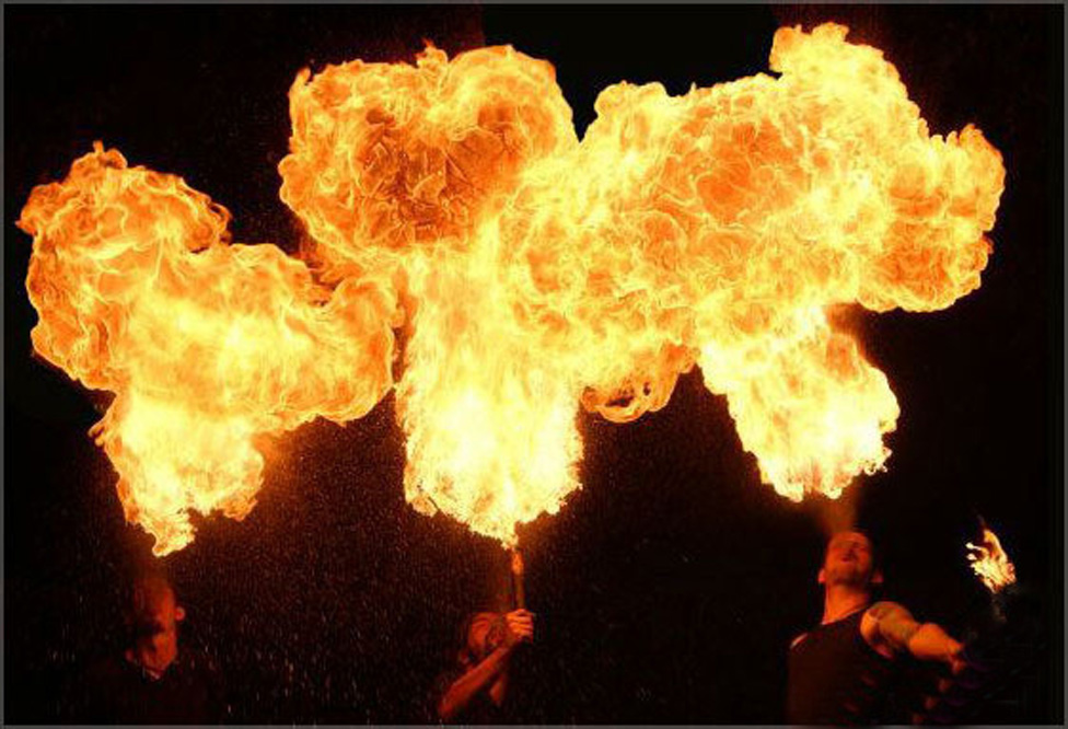 danse de feu, mangeur de feu, robe de feu, hula-hoop de feu, torche humaine, lance-flammes et pyrotechnie