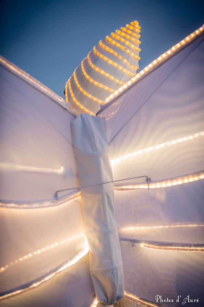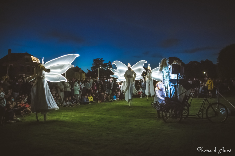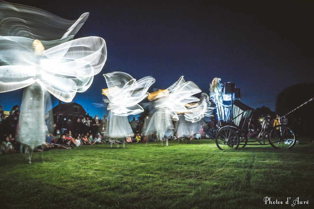 Spectacle fixe et/ou déambulatoire, pour 5 personnage et un pousse-pousse sonorisé. Avec effets visuels (costumes lumineux, fumée, nuage de bulles de savon), enrobé d’un univers musical.