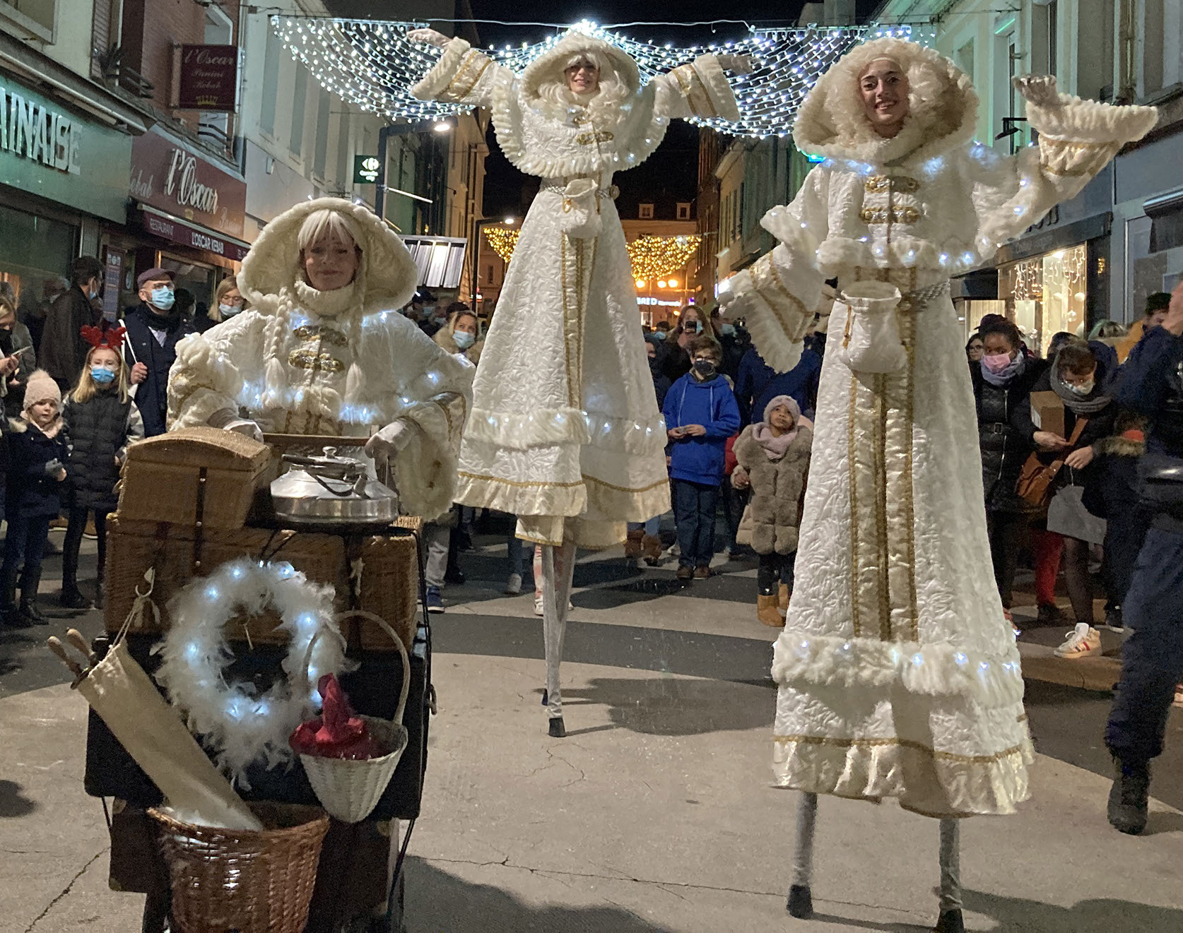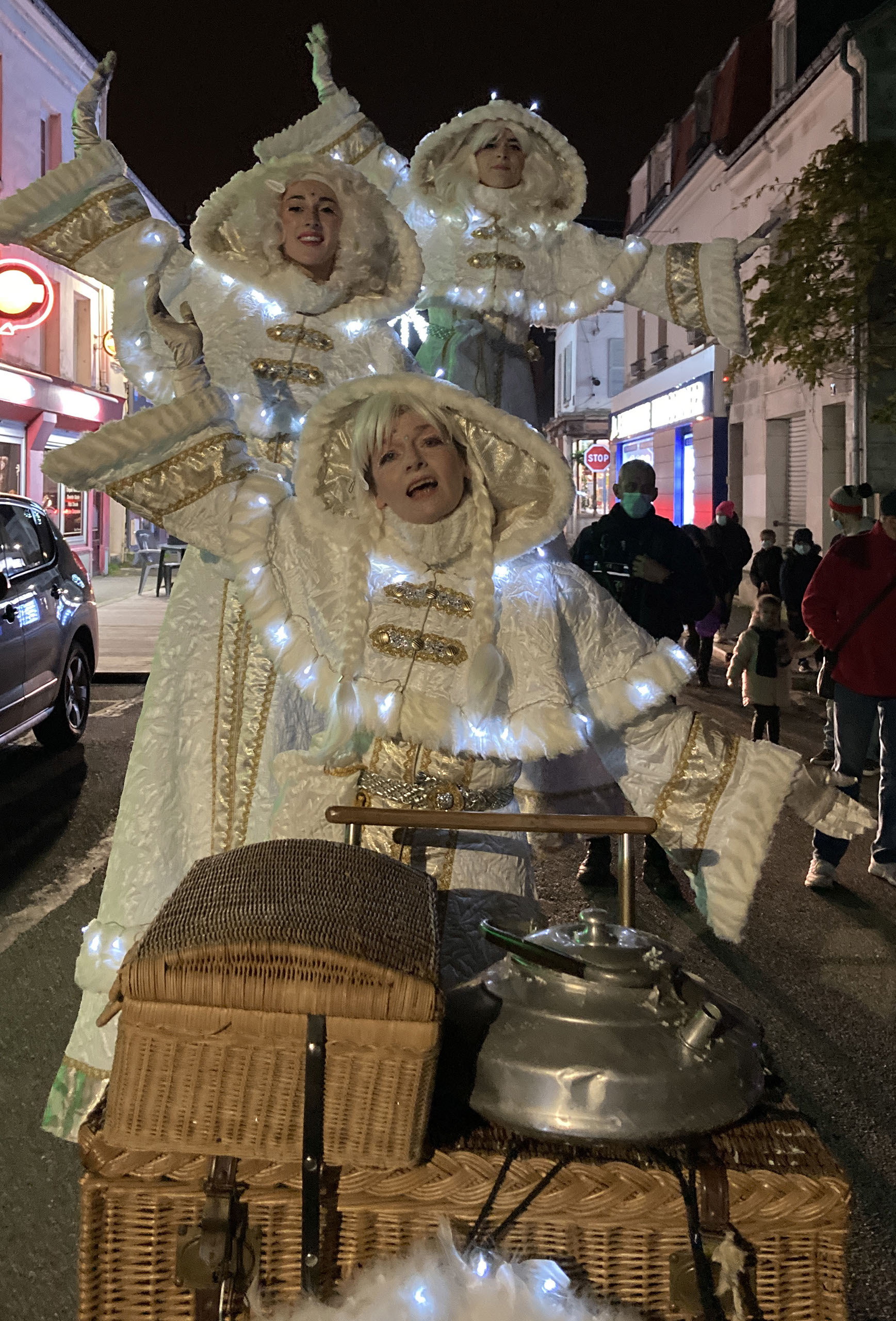 Comptines et petits artifices de proximité (paillettes, neige et confettis) agrémentent leur déambulation.