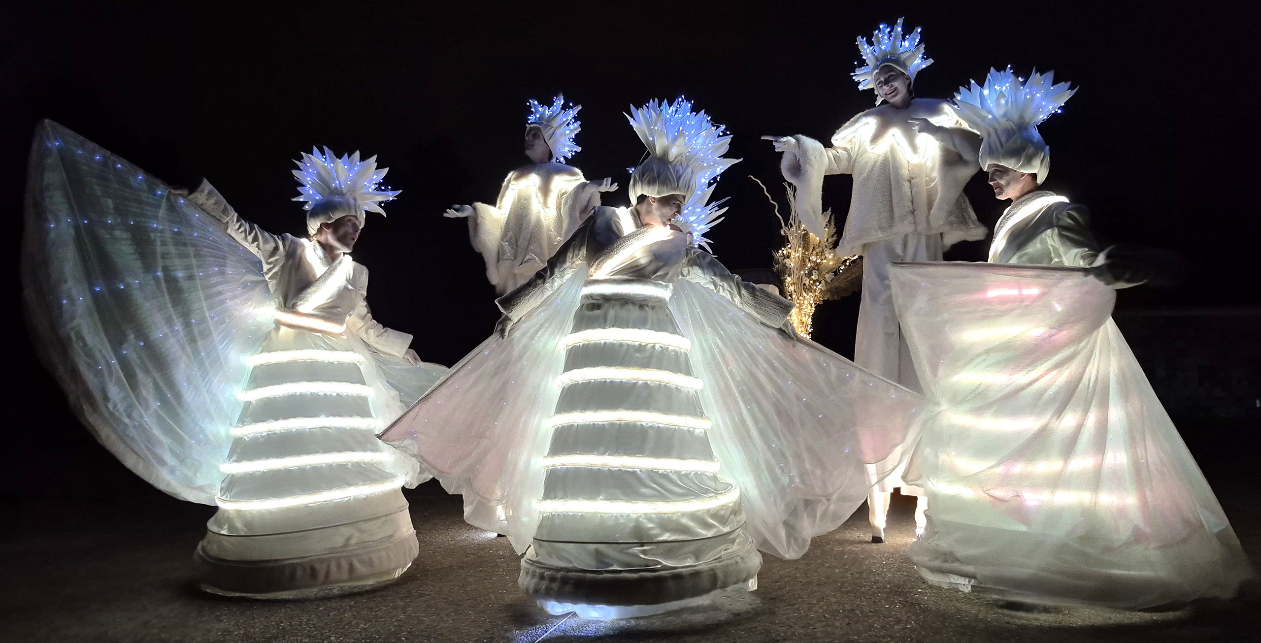 Spectacles visuels, performances artistiques, formations musicales, théâtre d'intervention, feu, ballooning, magicien et bien d’autres encore.