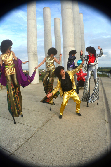 Dans un esprit Peace and Love, ces doux rêveurs à l’énergie détonante, accompagnés de leur pousse-pousse sonorisé ou d’une fanfare disco, invitent le public à les rejoindre car, pour eux, tout est prétexte à la danse.