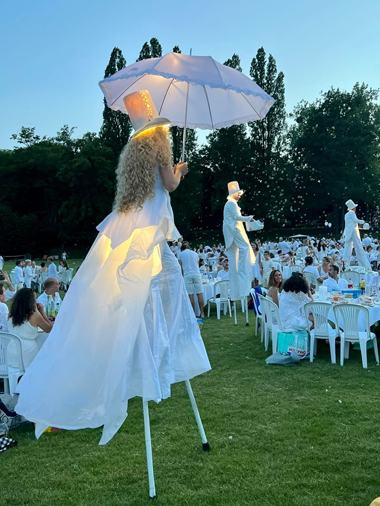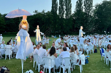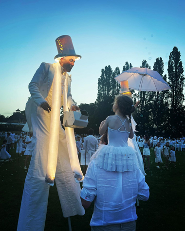 Les derniers invités s’annoncent. Leurs costumes de rêves, blancs et lumineux éclatent dans la pénombre du début de soirée. Ils ajustent leurs costumes, vérifient leurs chapeaux, puis endossent la nuit sur leurs épaules avant d'entrer dans la danse. Ils retrouvent leurs semblables, se saluent délicatement, inclinent la tête de côté avec grâce, conversent à voix feutrée : le bal peut commencer.