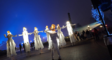 Spectacle fixe de 40 mns pouvant être joué deux fois ou être précédé d’une déambulation de 45 mns.