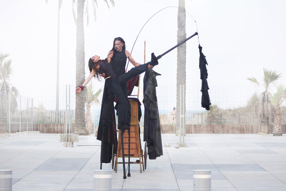 L'univers musical du tango, métissé d'électro, ainsi que le format atypique du tango sur échasses participent à la force dramaturgique de ce spectacle.