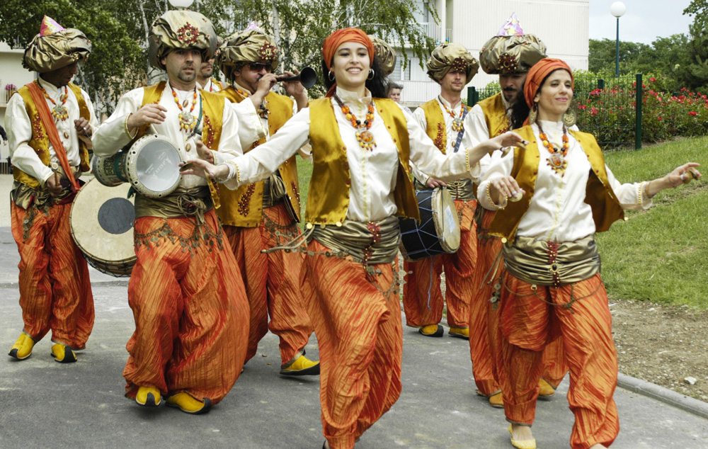 une fanfare accompagnée de danseuses, sortie tout droit des contes des mille et une nuit version underground,