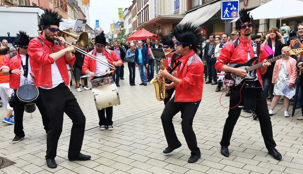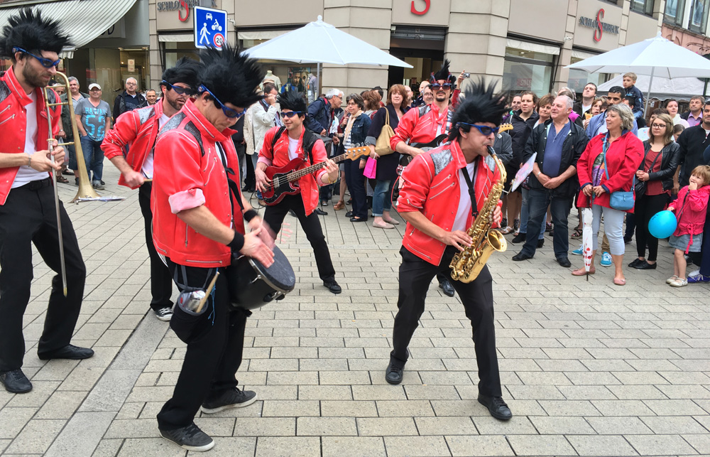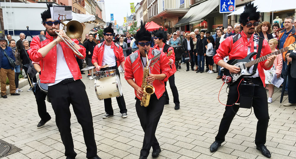 Sur une musique originale rythmée et festive, interprétée en déambulation ou sur scène,
