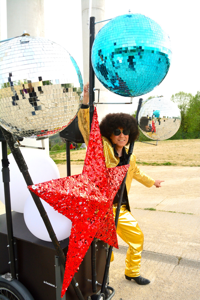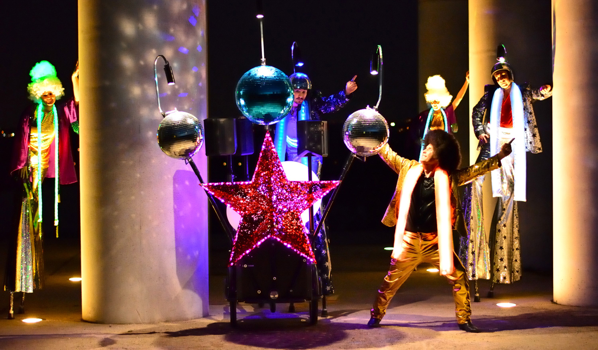 Dans un esprit Peace and Love, ces doux rêveurs à l’énergie détonante, accompagnés de leur pousse-pousse sonorisé ou d’une fanfare disco, invitent le public à les rejoindre car, pour eux, tout est prétexte à la danse.