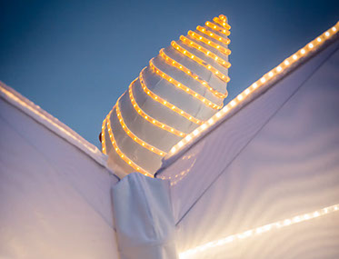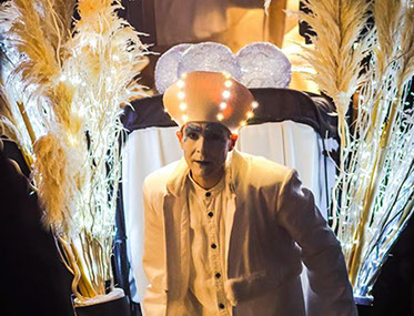 Spectacle fixe et/ou déambulatoire, pour 5 personnage et un pousse-pousse sonorisé. Avec effets visuels (costumes lumineux, fumée, nuage de bulles de savon), enrobé d’un univers musical.