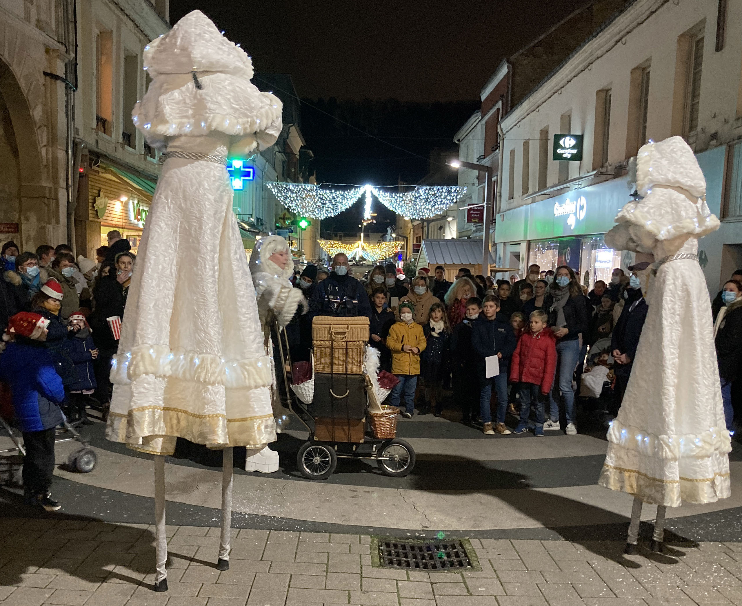 Comptines et petits artifices de proximité (paillettes, neige et confettis) agrémentent leur déambulation.
