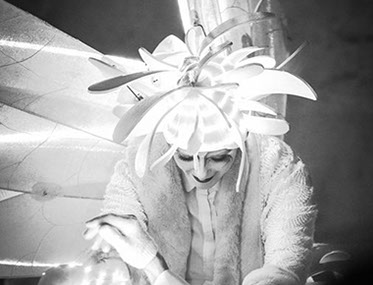 Spectacle fixe et/ou déambulatoire, pour 5 personnage et un pousse-pousse sonorisé. Avec effets visuels (costumes lumineux, fumée, nuage de bulles de savon), enrobé d’un univers musical.